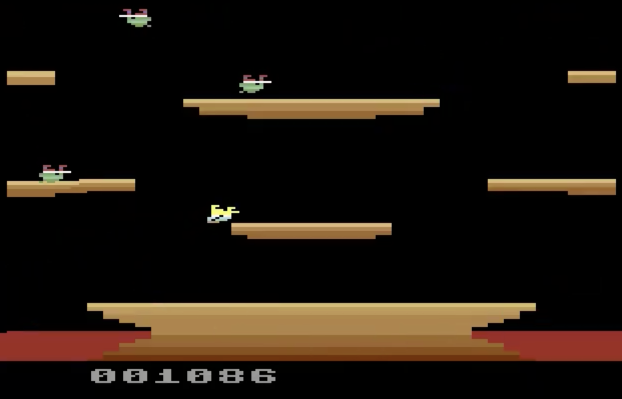 Drawing two sprites with single-line resolution already consumes most of our cycle budget, and we have precious few cycles left over for the playfield. The minimum-effort approach is to update the playfield every four scanlines, but this results in a blocky, low-resolution appearance.